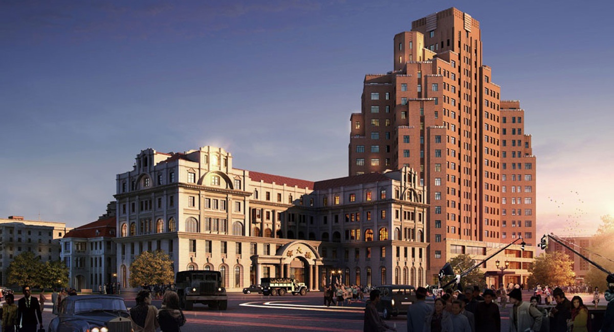 本項目為夢上海主題公園配套酒店,是浙江橫店影視城有限公司自行投資建造并由旗下酒店管理公司經(jīng)營管理的經(jīng)濟型酒店,主要接待客人以在橫店拍攝的劇組工作人員和至橫店游玩的游客為主,共分為三棟建筑,總客房數(shù)約為400間,總建筑面積為40124平方米,其中上海大廈(主樓)建筑面積為26676平方米,客房數(shù)約346間;鋪江飯店(副樓)建筑面積為9213平方米,客房數(shù)約136間;俄羅斯領事館建筑面積為4235平方米(定位為餐飲娛樂樓作為出租,不在本次設計范圍內(nèi))。本項目建筑主體已結(jié)頂。