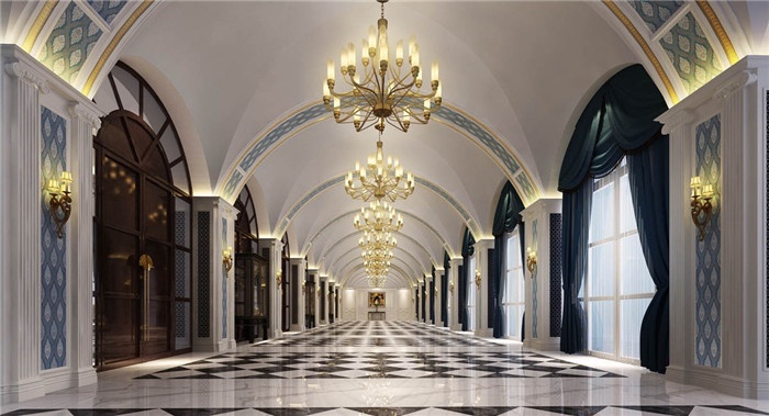 一個較大的酒店設(shè)計空間可利用天花的升降、地坪的高差,以及圍欄的、列柱、隔斷等進行多次元的空間分割。實體隔斷如墻體、玻璃罩等的垂直分割成私人密性比較強的酒店空間,隔透性隔斷,如各種形式的落地罩、花窗隔層,既享受了大空間的共融性,又擁有了自我呵護的小空間,列柱隔斷,可構(gòu)成特殊的環(huán)境空間,似隔非隔,隔而不斷。燈飾區(qū)隔空間,利用燈飾結(jié)合天棚的落差來劃分空間,這種空間的組織手法,使整體空間具有開放性,顯得視野開闊,又能在人們心理上形成區(qū)域性的環(huán)境氛圍。